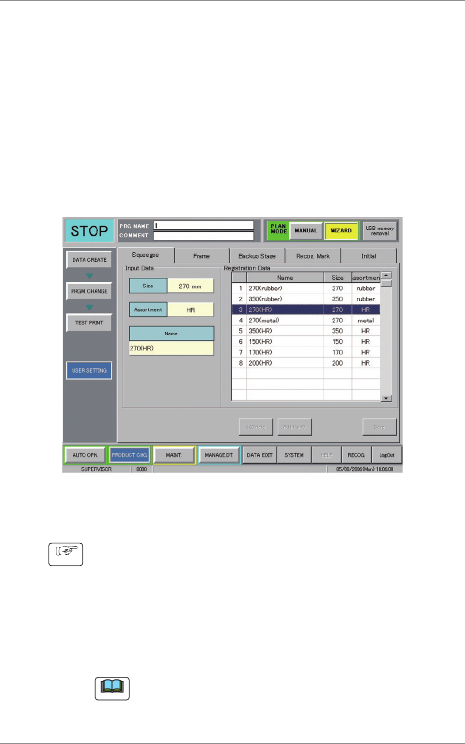 (3) When the [Addition>>] button is pressed, the selected squeegee