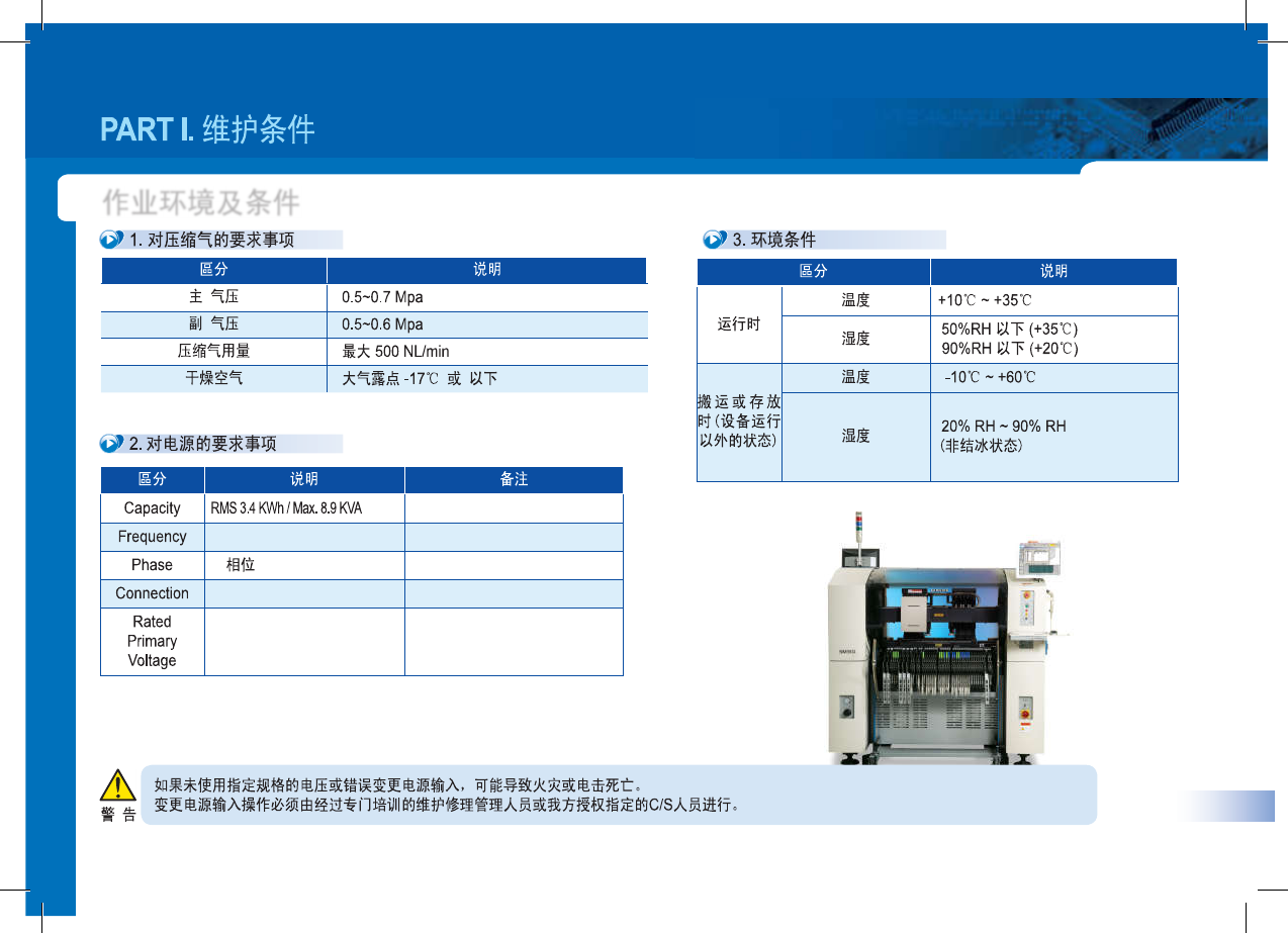 变更电源输入操作必须由经过专门培训的维护修理管理人员或我方授权指定的