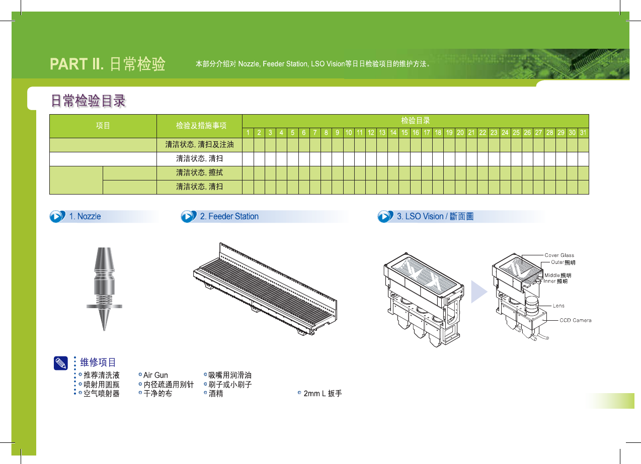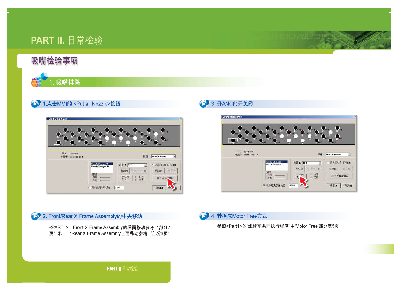 SM 3 10 M ain te na nc e Ha nd bo ok 15 PART II . 日常检验 吸嘴检验事项 1 . 吸嘴排除 ◎ , 3 . 1 . 点击 MMI 的 < Put all Nozzle > 按钮 开 ANC 的开关阀 ■ : 尺 ' 5 ! : SR 十 T « M ( l « p • 3 r 无雾 ^ 作伴 ifliw | K 霣 肋 , " ? ? 7 ? No /…