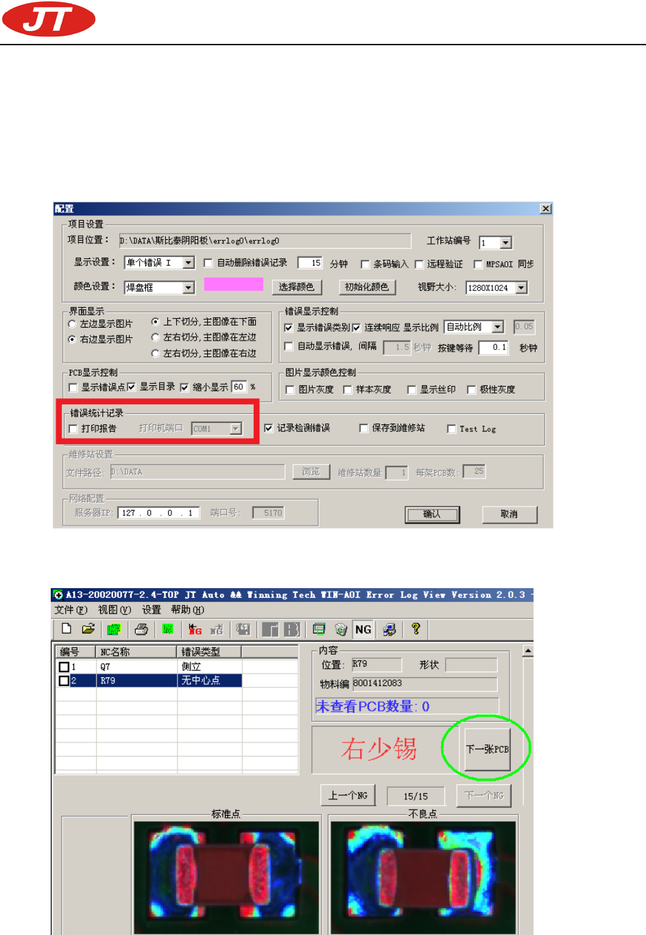 2、 设置完成后,点击确认退出窗口,这样在每片 PCBA 经过检测与确认完成后,只要点击“下一