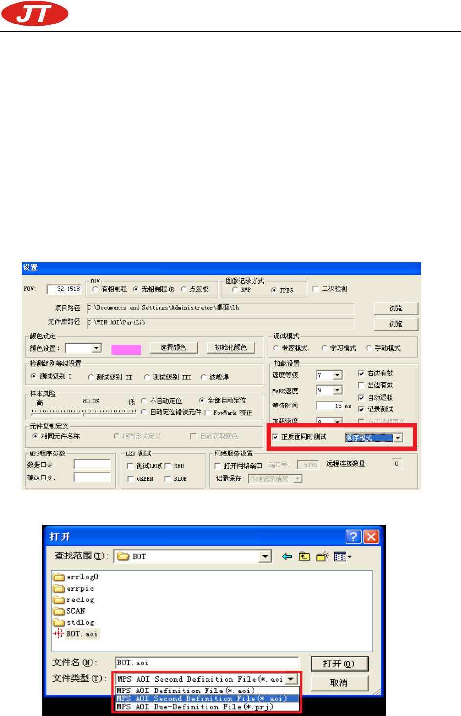 在弹出的对话框内,选择文件类型为“MPS AOI Second Definition File”,即第二个测试程式,如下图: