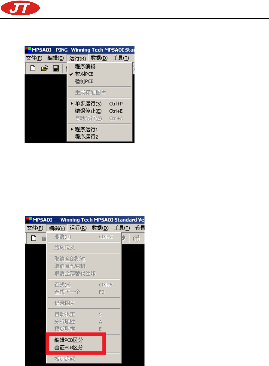 5、 测试过程中切记要保证 PCB 的放置顺序,如需调整程式时,在“运行”菜单里将测试模式改