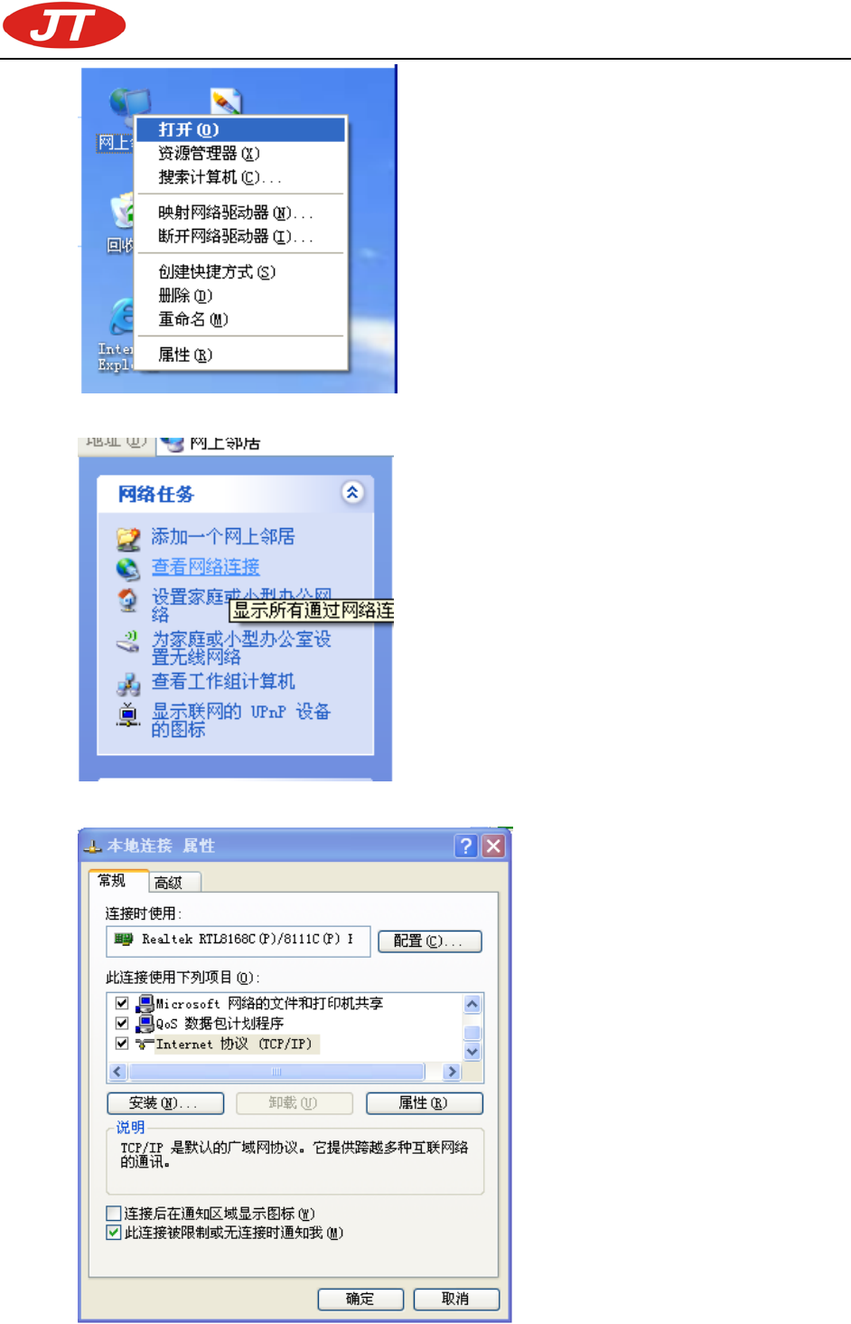 十三、在点击“查看网络连接”后选中“本地连接”打开“属性”选项,如下图:
