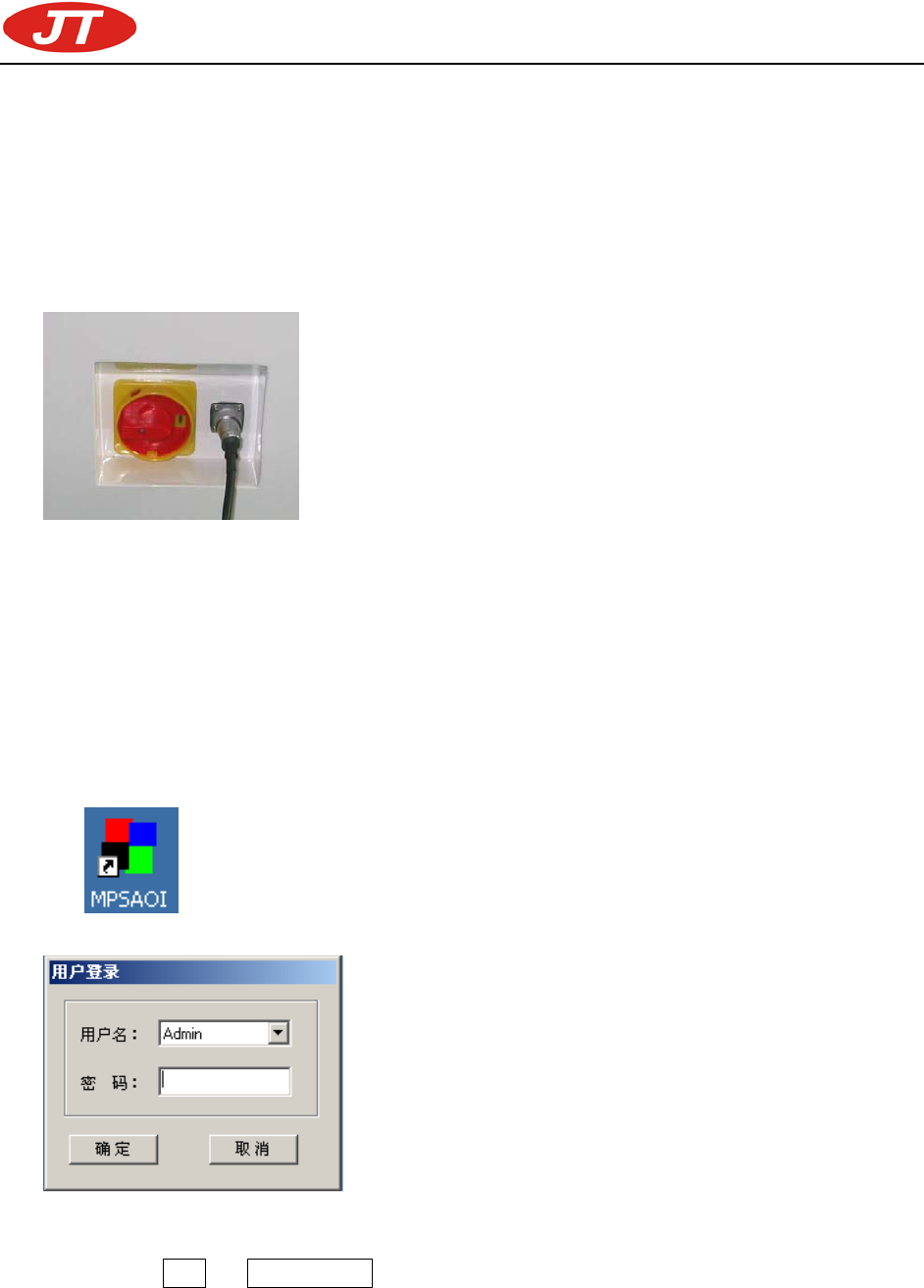 深圳市劲拓自动化设备股份有限公司 (培训资料) - 78 - 附录 5 : JT - AOI 怎样调入已测试过的机种 一 . 怎样开机 ? 1. 确认外部供给交流电源 ~220V , 接入功率不小于 1000V A 。如图所示。 2. 打开机器左后侧总电源开关。 按住工控机旁边的 UPS 电源开关并保持 3 秒钟,听到”嘀”声后电源开启,这时所有的控制开关灯全 部正常点亮。检查 UPS 的输入输出电压显示是否在正常范围以内。 3. 用万…
