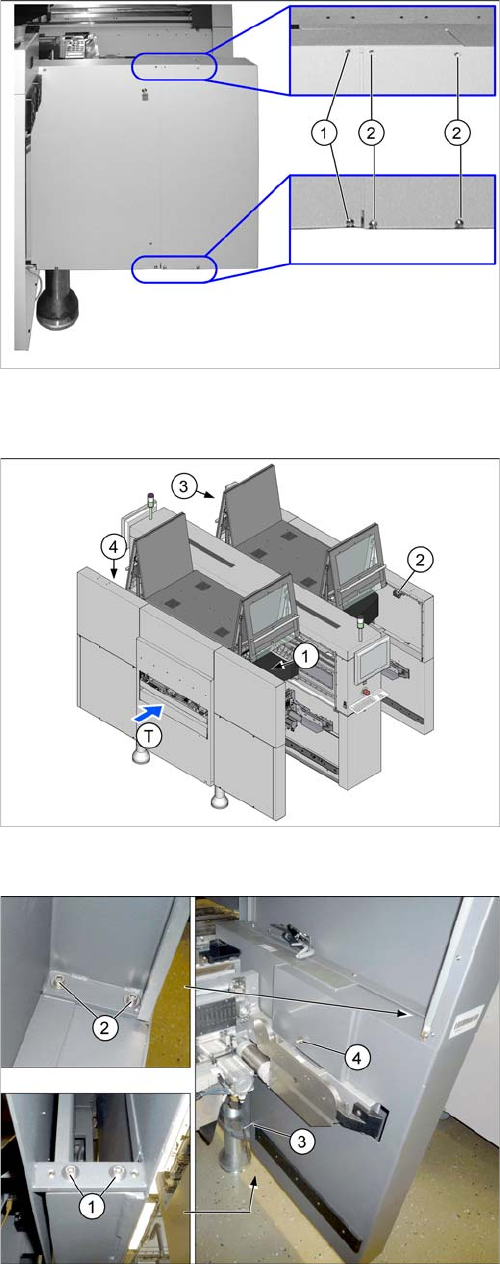 ► Loosen the four screws (2) fastening the side cover