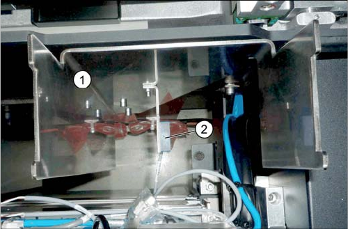 ► Fix the reject bin holder with 2 screws to the position shown on the machine frame.