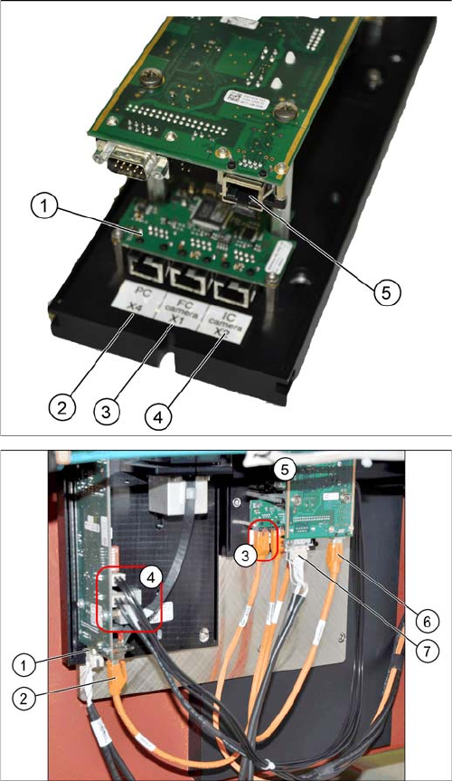 und in den Anschluss X4 an der FC-Kamera (5).