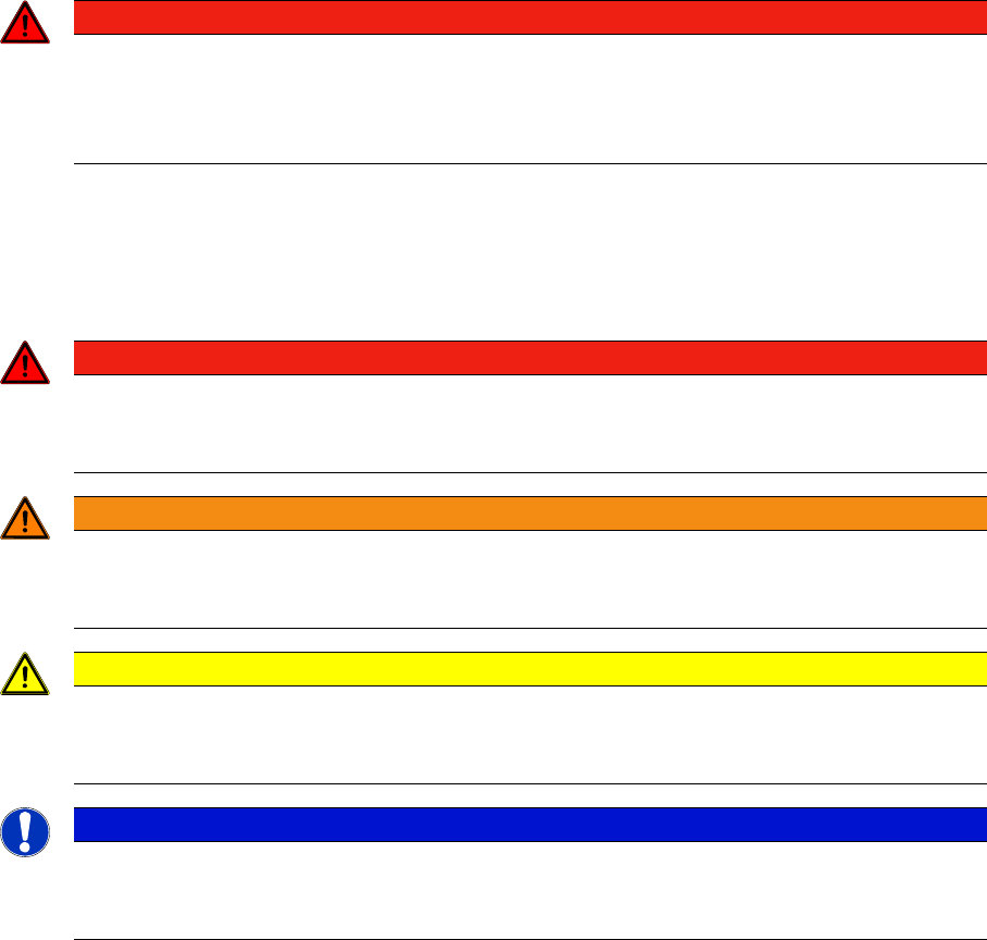 For the purposes of this manual, this indicates that fatal or severe injuries or considerable dam-