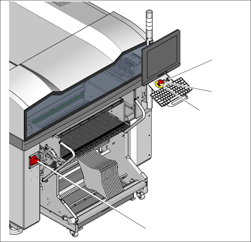 Istruzioni per l'uso E by SIPLACE 2 Sicurezza di esercizio A partire dalla versione software SC 712.1 Edizione 05/2019 2.7 D ispositiv i di sicurezza 79 2.7.2 Interruttori e tasti della macchina 2.7.2.1 Posizione di…