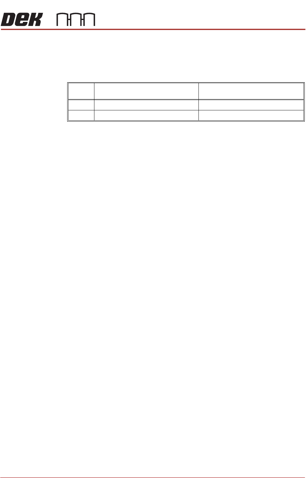 DEK printer and within easy reach of the operator. Use the following table to