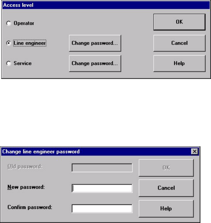 Se encuentran a elección los niveles "Operador", "Ajustador" y "Técnico de servicio". Para los ni-
