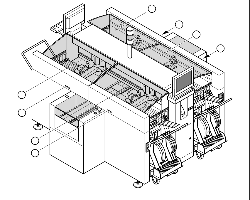 nos en la ranura entre las mesas intercambiables de componentes y el montante de la máquina