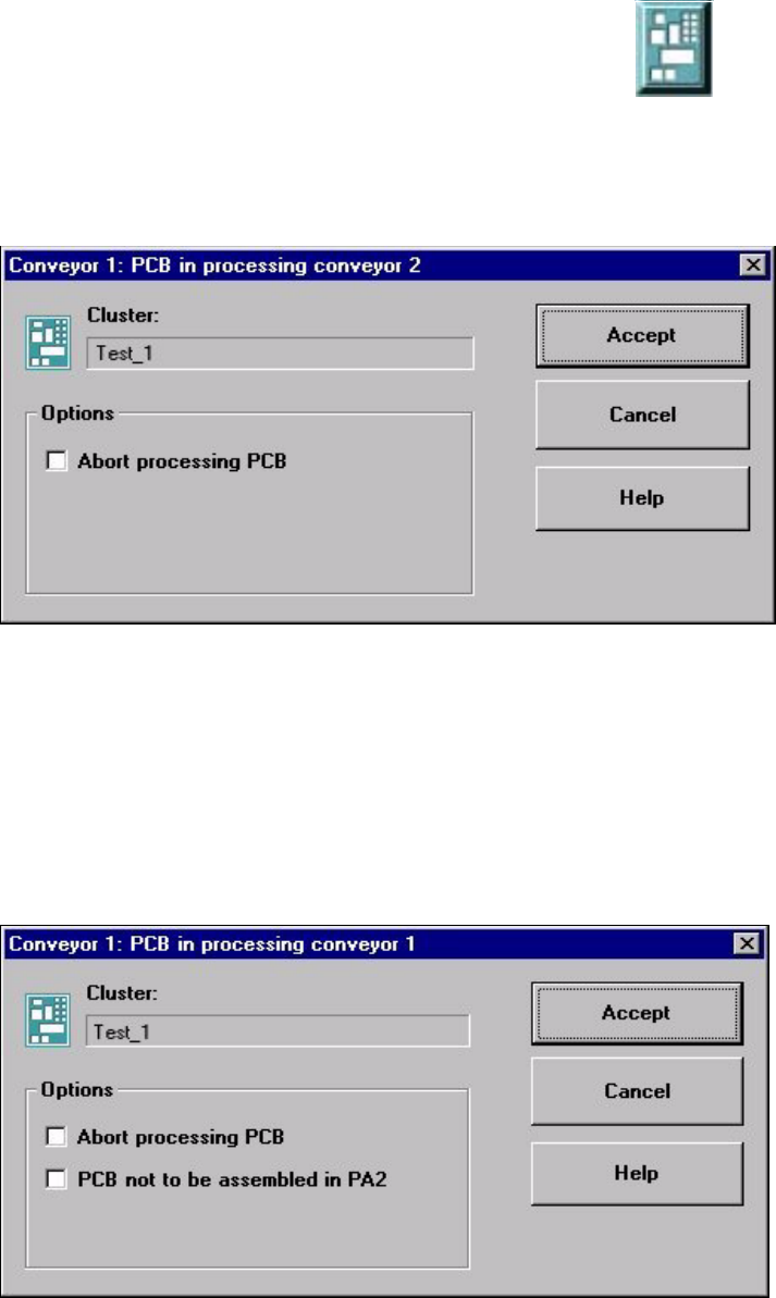 Si la placa de circuitos se encuentra en la cinta de entrada, se abre el siguiente cuadro de diá-