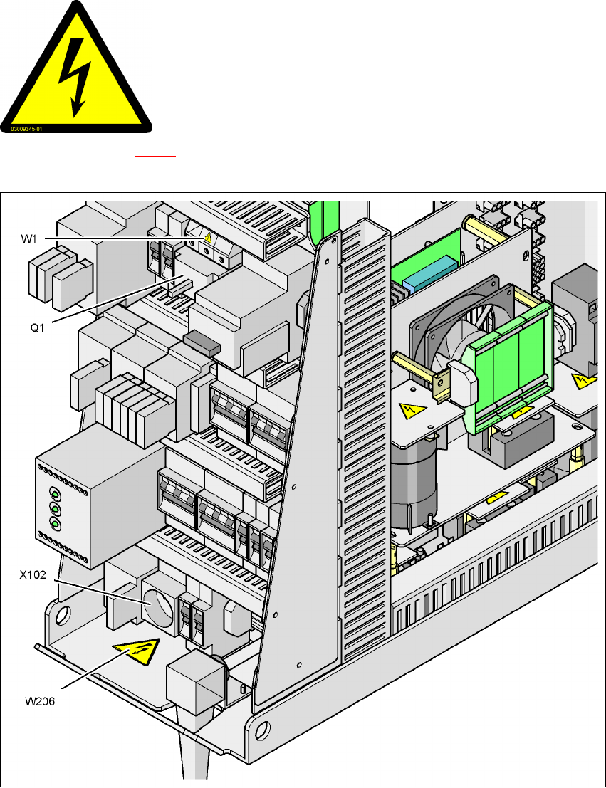 Fig. 2.2 - 8 Cartello d'avvertenza W206 nella presa di servizio X102 e W1 dell'interruttore principale Q1