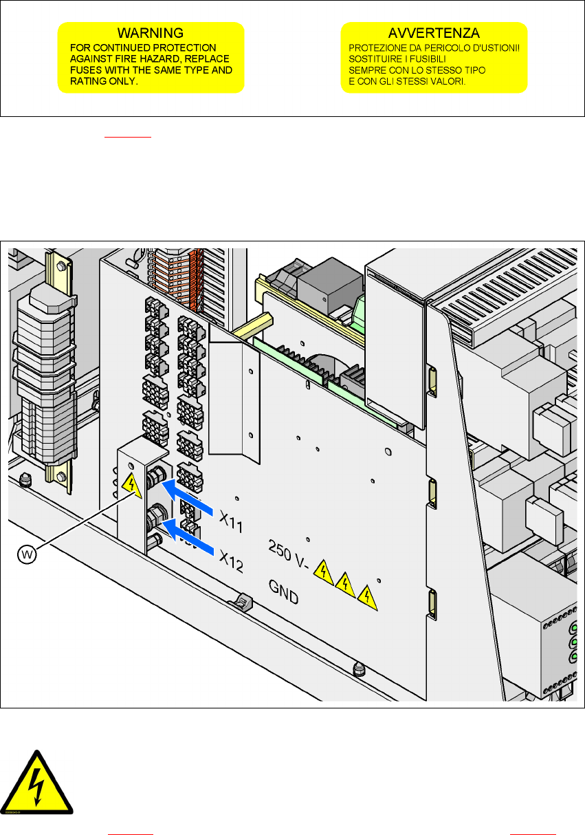 Fig. 2.2 - 10 Cartello d'avvertenza W sul rivestimento sull'alimentazione di corrente per il servoamplificatore