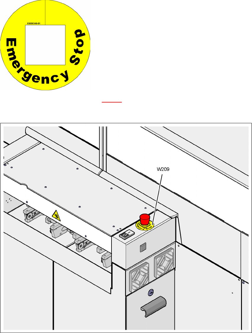 Fig. 2.2 - 15 Cartello d'avvertenza W209 dei tasti d'ARRESTO D'EMERGENZA