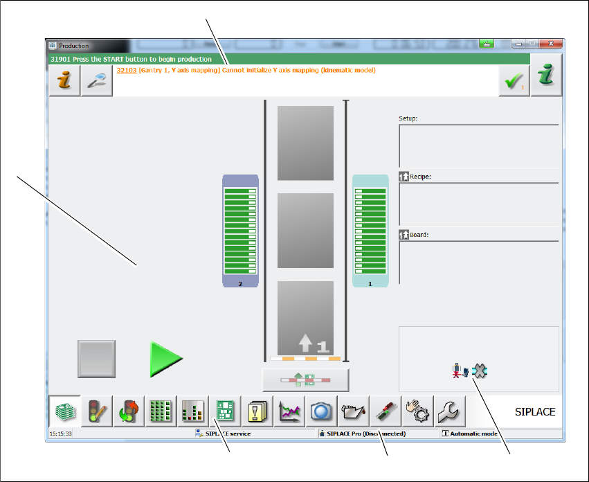 图示以 E by SIPLACE 贴片机的 “ 生产 ” 视图用户界面为例。