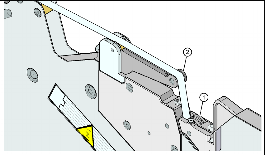 将控制杆 (项目 5)向前推,以便将拾取窗口 (项目 2)升高到第一个锁止位置。