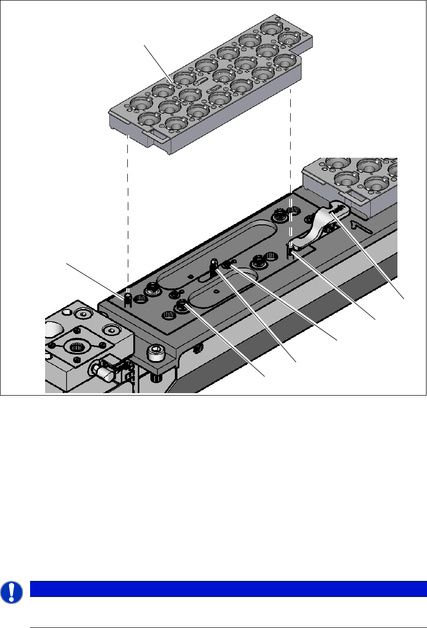 插入前,对齐吸嘴盘,使对中销 (项目 2 和 6,图 6.1 - 5,第 256 页)滑入对中孔和