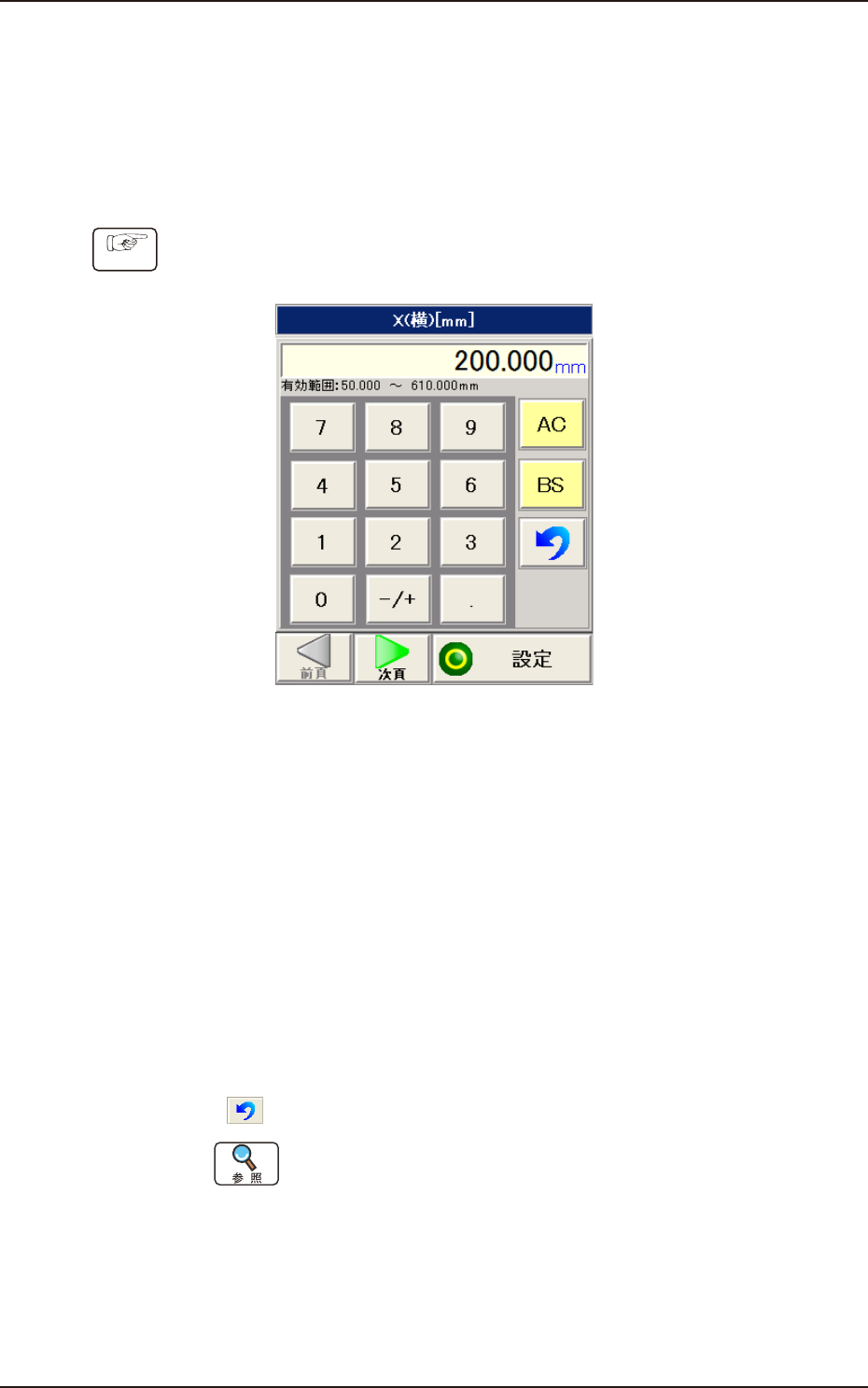 (2) 画面の下部に表示されている有効範囲を参考にして、テンキーから