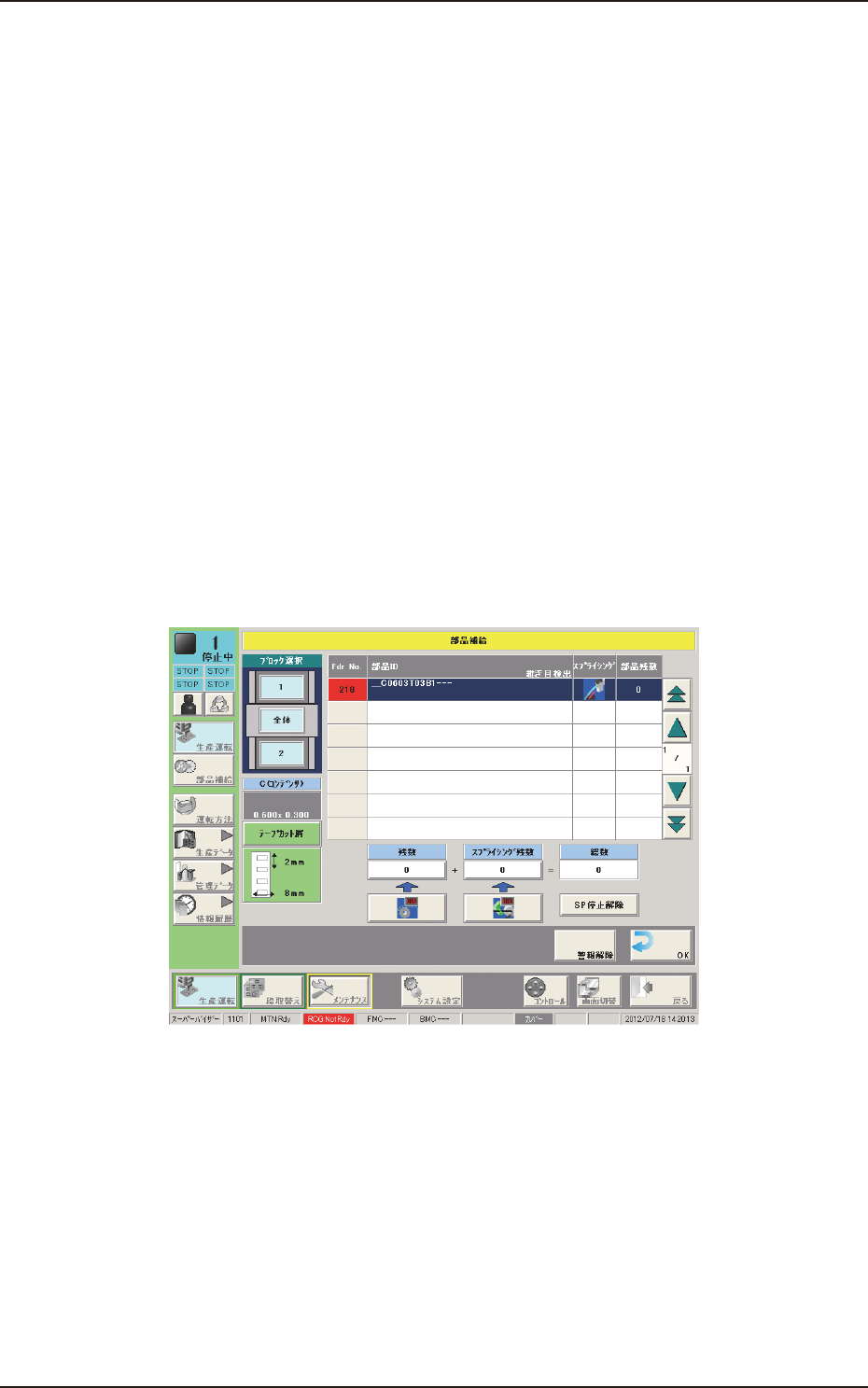 部品切れが発生すると、“部品補給”画面が表示されます。