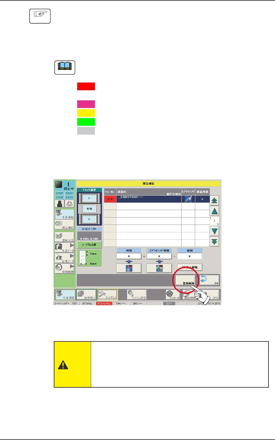 生産運転中に部品切れが発生すると、装置は以下の警報で知らせます。