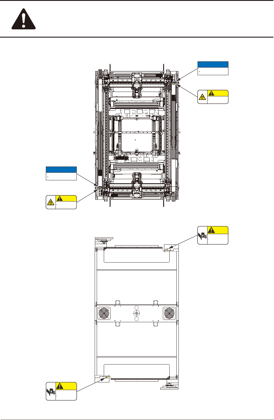 警告ラベルは、危険か所または注意か所に貼付けてあります。