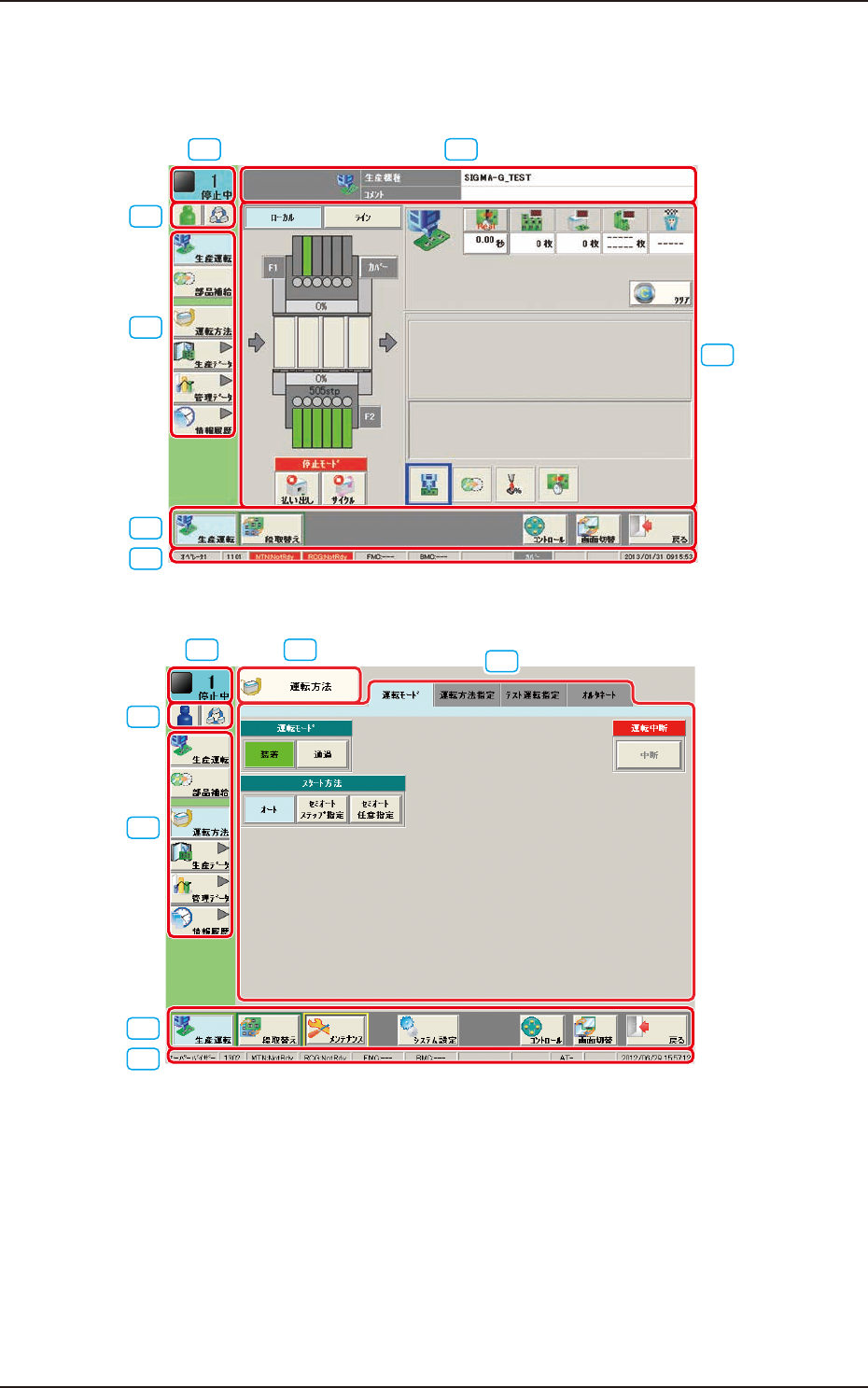 [ 生産 ] ボタン、[ 段取 ] ボタンを押した場合は、オペレータ 2 でのロ
