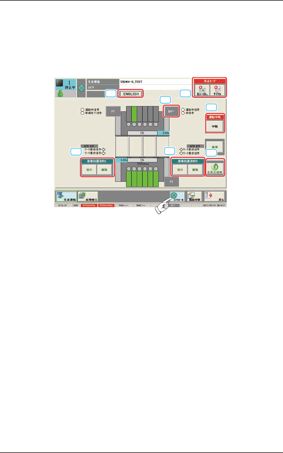 1OM-1750 2-8 1302-001 2.1 コントロールメニュー 共通メニューバーにて、[ コントロール ] ボタンを押すと、 “コントロー ルメニュー画面”が表示されます。 “コントロールメニュー”画面には、基本的な操作実行ボタンがまとめて 配置されています。 [1] [1] [3] [4] [5] [2] [6] F1B7 [1] 基板位置決め L、R [ 実行 ] ボタン [ 実行 ] ボタンを押し、10 秒以内に操作パネ…