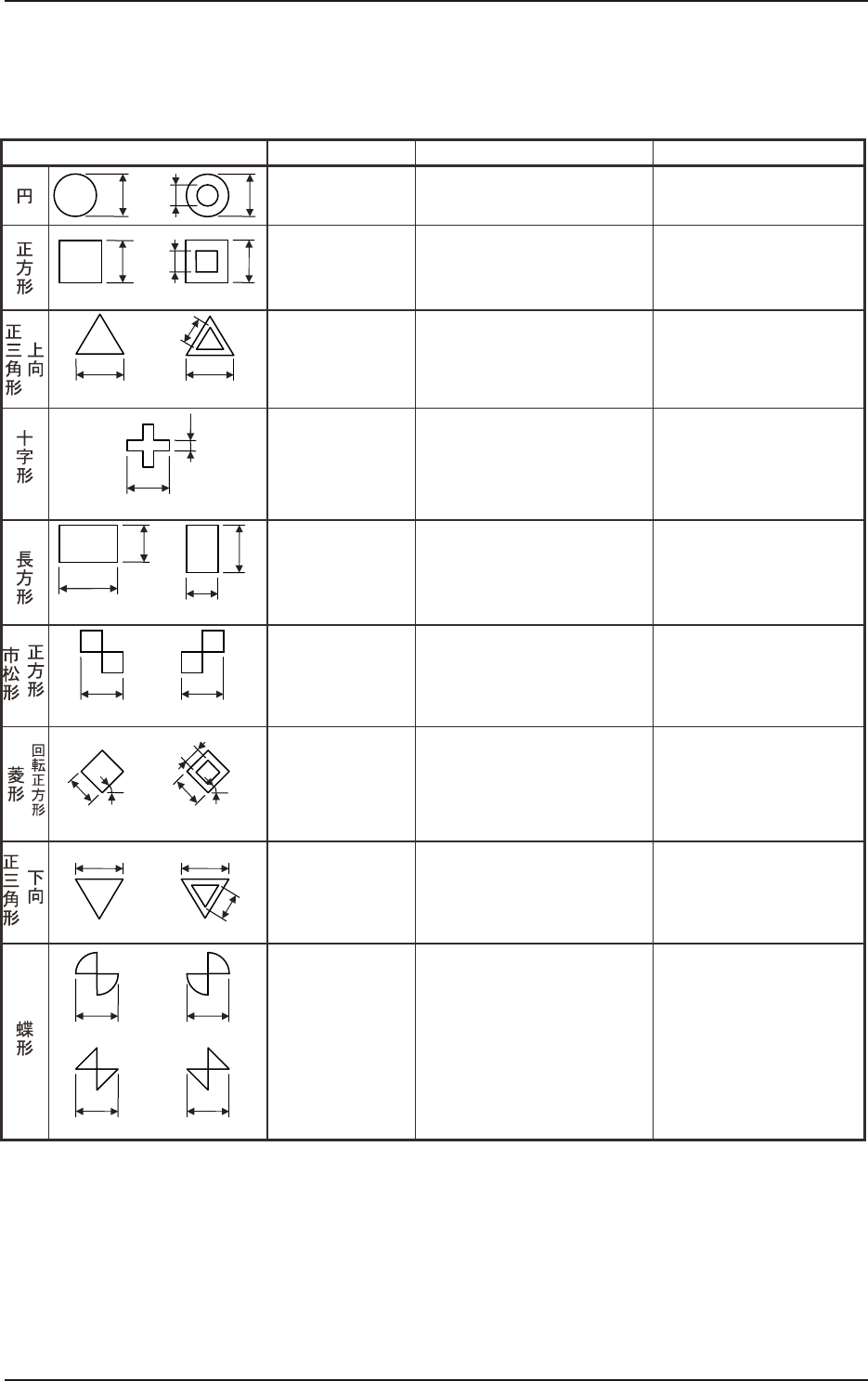 1OM-1750 4-14 4. 基板認識マークの説明 (1) 形状 / 寸法 形 状 D1 [mm] D2 [mm] 備 考 0.2 ~ 3.0 0 ~ 2.8 ( ただ し 、 D 1 − 0. 2 ≧ D2) • マーク基準 : 中心 • D2 : 抜き穴寸法 0.2 ~ 3.0 0 ~ 2.8 ( ただ し 、 D 1 − 0. 2 ≧ D2) • マーク基準 : 重心 • D2 : 抜き穴寸法 ( ) 0.5 ~ 3.0 0 …