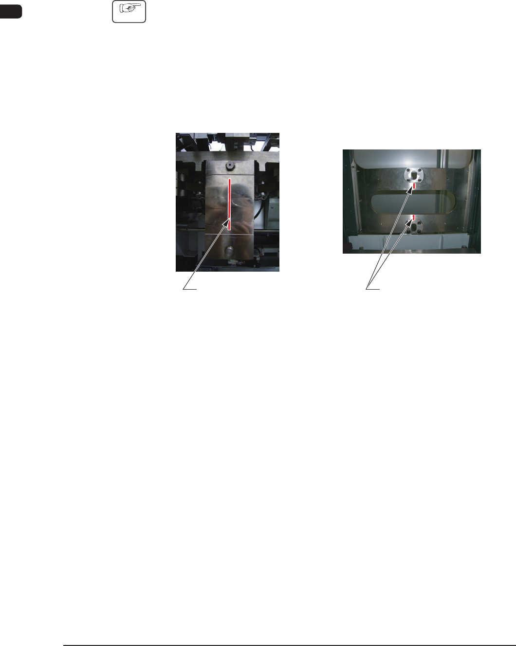 7OM-1602 第三章 1. 维护菜单 3-7 1 103-003 • 料盘拉钩推车侧和升降机单元侧的划线须一致。 组合料盘拉钩侧和升降机侧时 F7C6 • 设在升降机单元背面侧的水准器 2 处气泡须静止在中央红圈内。 水准器 (2 处 ) F7C7 (4) 用锁紧螺母固定小脚轮部的螺栓。