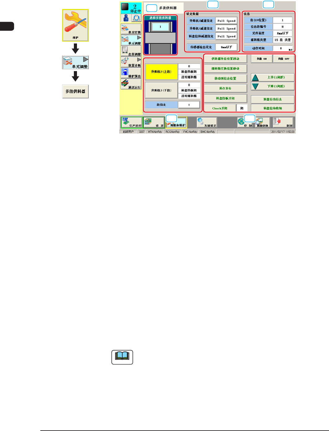 按下单元调整子菜单的 [ 多段供料器 ] 按钮,便显示以下界面。