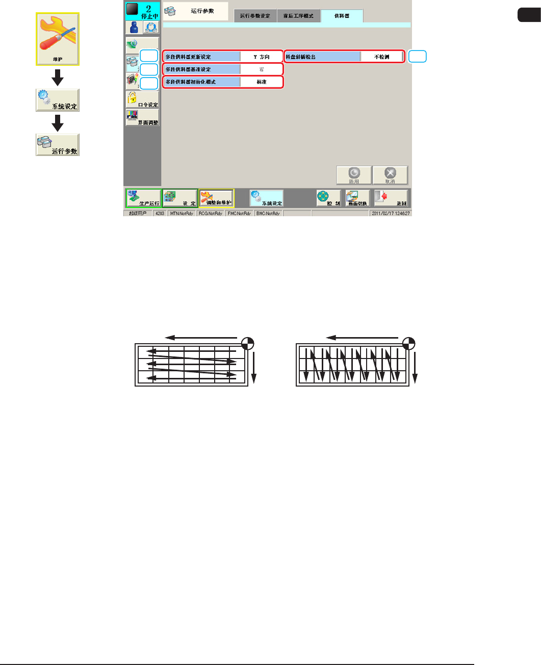 并且,拉出 / 返回水准的教示通过维护 / 单元交换 / 多段供料器安装