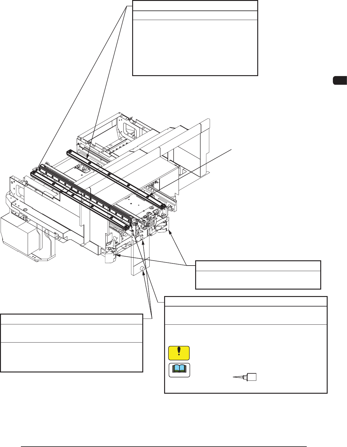 7OM-1602 第四章 3. 维护保养部位 4-19 3.2.5 料盘拉钩推车 直线导轨 每三个月 注油 (DAPHNE EPONEX GREASE No.1) 请用油棉纱擦去原有的润滑油,在直线导轨模块的注 油孔用注油器注入40cc新润滑油。 托盘接收器 每三个月 点检 目视检查托盘接收器的磨损。 托盘磨损到呈弯曲状时,请按以下步骤 进行更换。 1.拧下托盘接收器的螺栓(一侧6个),卸 下托盘接收器。 2.安装新的托盘接收器,拧紧螺…
