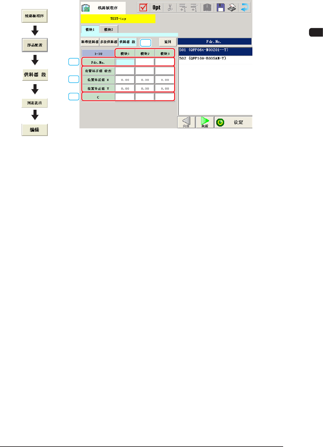 输入从各模块的托盘基准位置看到的多段供料器的坐标基准。