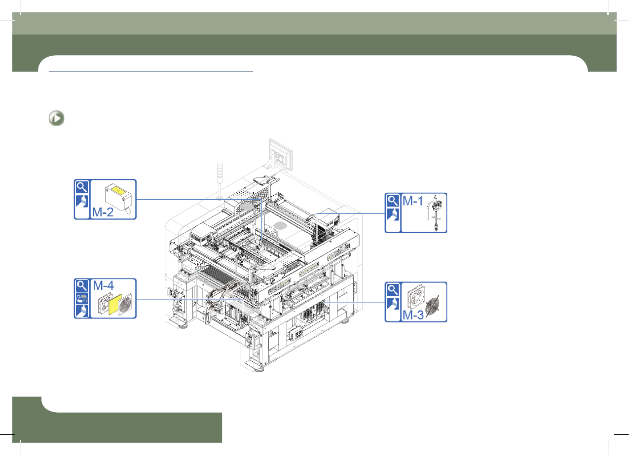 제 2 장 유지보수 점검 항목 Advanced Chip Shooter DE CAN S2 Mai nte nan ce Ha ndb oo k 2-5 월간 점검 항목 (1/2) 점검 항목 소모품 교환 주기 참고 사항 소요시간 점검 주기 No 점검 품목 점검 사항 도구 월간 M-1 Head Spindle 청소 에어건, 천 30분 M-2 Conveyor Sensor , Fiducial Mark 점검 및…