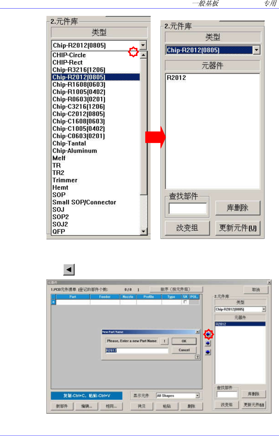 Samsung Component Pla cer SM310 Pr ogramming T utorial 1.3.2.2. 新元件的登记 ( 登记新元件后作业时 ) Chip (Resistor 1608 ,0.45t, 8mm,TN03S) 登记 单击位于屏幕右下角的 < 新部件 ..> 按 钮。 输入 < 元件名 称 > 。 ( 请输入 Chip-R1608T0.45) 1-16