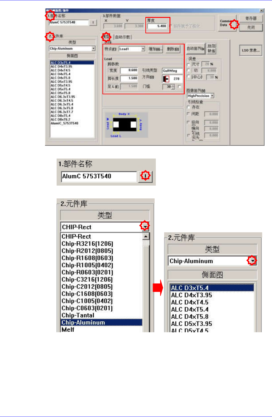 Part Group 选择 Chip-Aluminum, Profile 选择 ALC D3xT5.4。