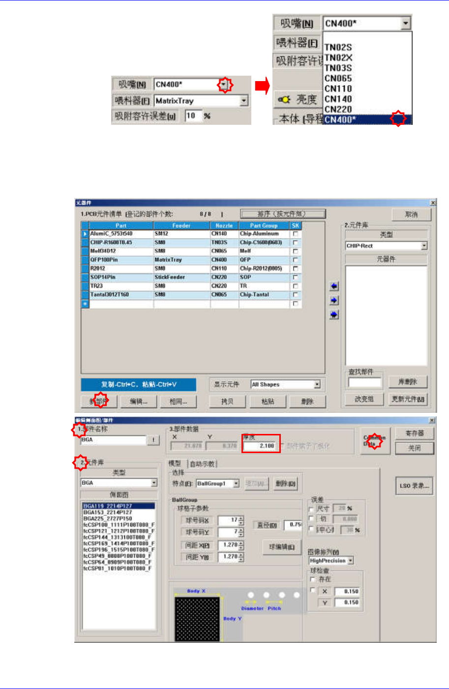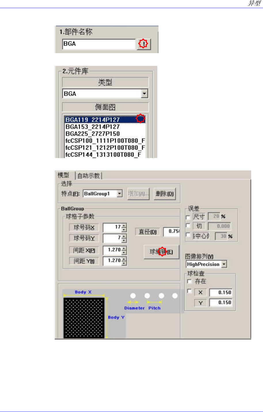 Samsung Component Pla cer SM310 Pr ogramming T utorial 单击 < 寄存器 > 按钮,登记元件。 BGA 登记 单击位于屏幕右下角的 < 新部件 ..> 按 钮。 2-14