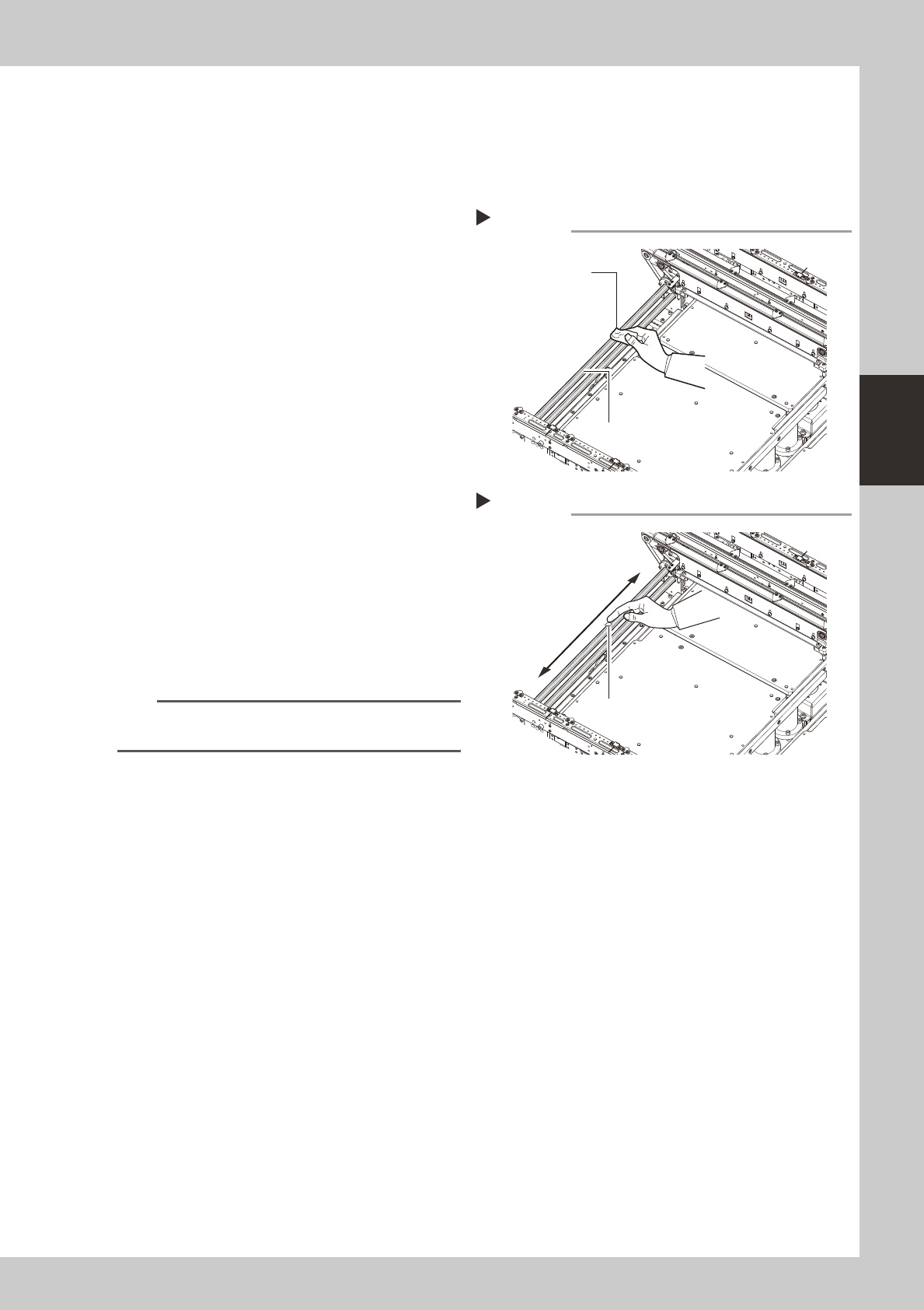 3-50 3 Periodic maintenance items 6 Clean the conv ey or . Use a fine brush or a cloth to clean the gaps between the conveyor frame and the board guide. 7 Reattach the belt. 1. Place the belt on the tension pulley and pa…
