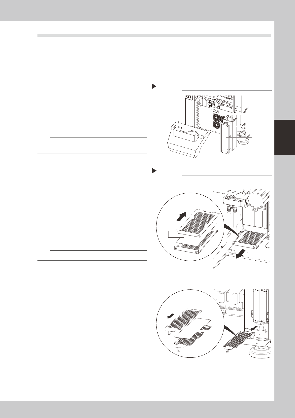 3-55 3 Periodic maintenance items 5.7 Controller 5.7.1 Cleaning the filter T here are 2 filter types that require cleaning, and they are located at the following 3 positions: System controller filter : 1 filter at rear c…