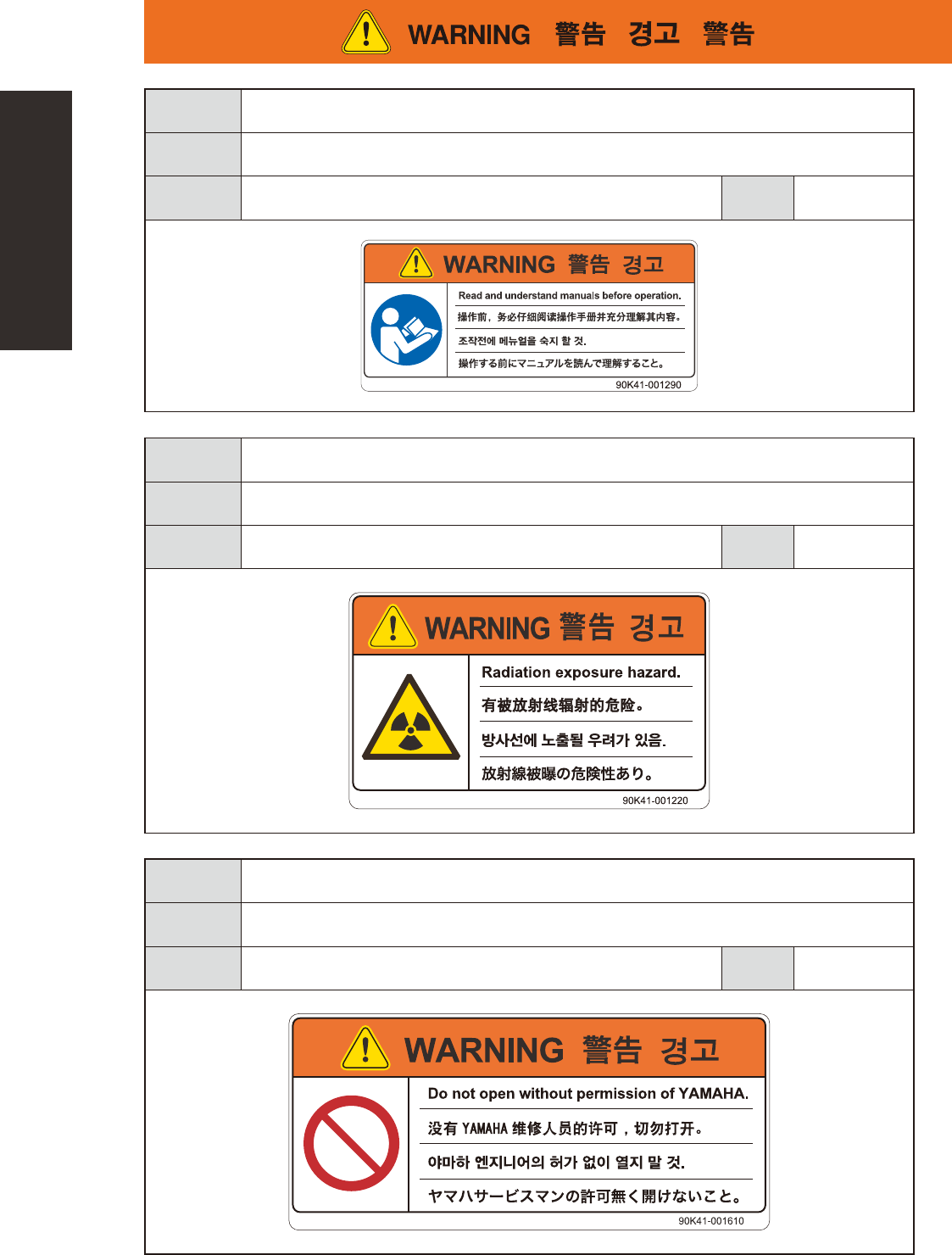 Do not open any cover without permission from YAMAMA service personnel.