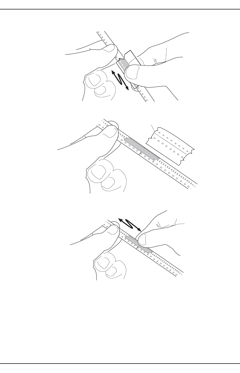 4. 折返透明的拼接胶带,使得治具上的销嵌入胶带孔内。按压胶带粘贴处,使得胶带牢固