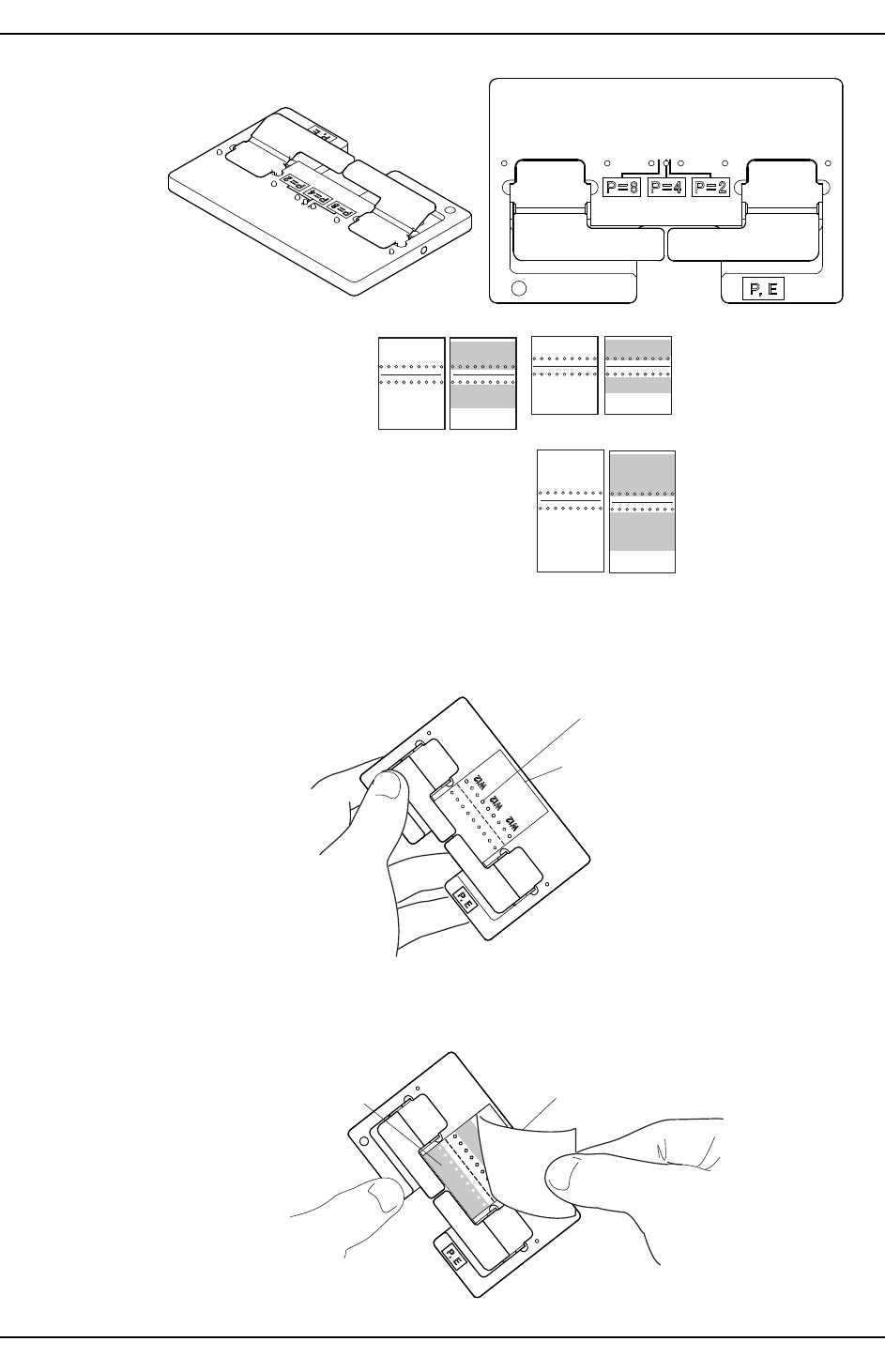 1. 将拼接胶带放置在手持式料带拼接治具上。(放置后,能够看见 W12、W16 或 W24 字样的