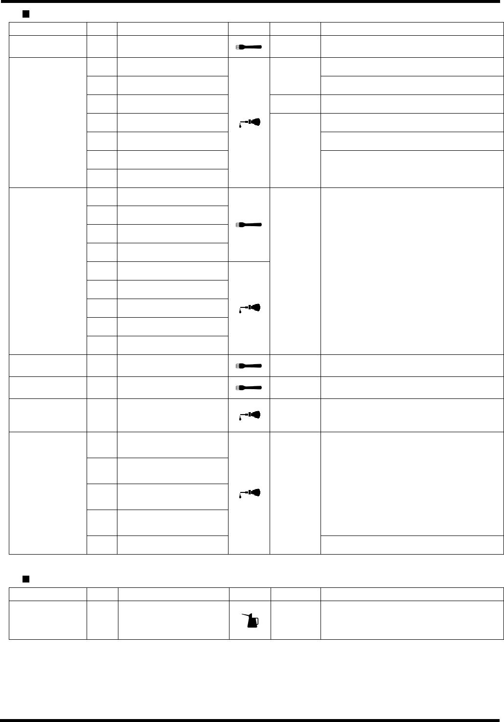 AVK3 维修手册 6.2 检查和润滑 D77MCC-80-020- A0 6.2-8 单元 编号 项目 工作 加油量 描述 1. 销的旋转滑动部件 2. 轴和销之间的旋转滑动 部件 1 至 2 滴 润滑脂加在总成上。 3. 辊从动件和凸轮的滑动 面 0.5cm 3 位置:凸轮表面。 4. 凸缘和下砧座的滑动面 5. 齿轮和轴齿之间的啮合 部位 0.3cm 3 位置:润滑脂喷嘴。 6. 凸轮从动件和螺母的滑 动面 6.2.13 下砧座 …