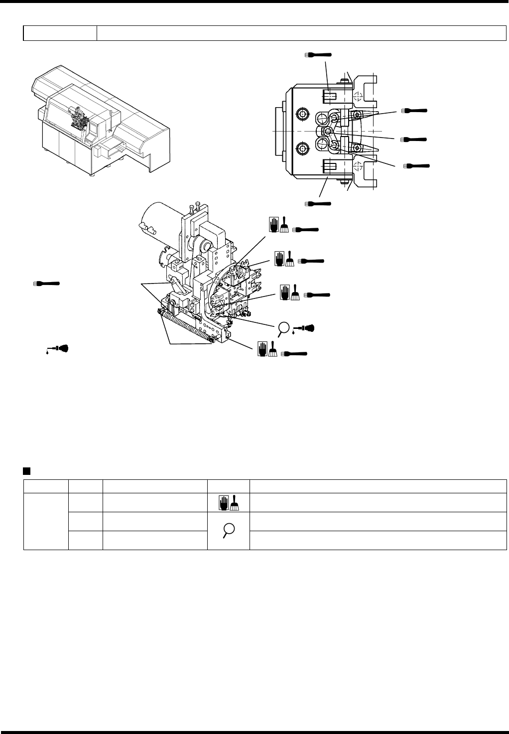 AVK3 维修手册 6.2 检查和润滑 D77MCC-80-020- A0 6.2-27 加油润滑 周期 编号 项目 工作 加油量 描述 1. 90° 旋转夹 LM 导杆 ( 4 处) 2. 插入单元传送 LM 导杆 3. 传送夹上下滑动 LM 导 杆 4. 传送夹前后下滑动 LM 导杆 0.09cm 3 位置:滑动表面。 5. 凹槽凸轮的滑动表面 位置:润滑脂喷嘴。 6. 控制杆支承 7. 控制杆支承 ( 2 处) 8. 销和夹头的滑…