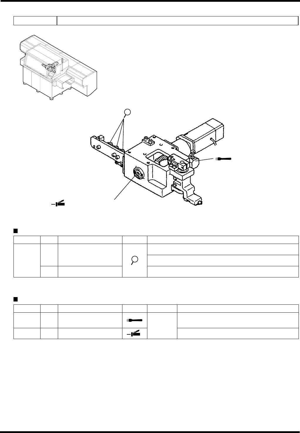AVK3 维修手册 6.2 检查和润滑 D77MCC-80-020- A0 6.2-31 6.2.19 JW 头装置 装置编号: 1087120100 检查 周期 编号 项目 工作 描述 确保跳线平稳移动。 a. 跳线 确保跳线喷嘴的旋转部分平稳旋转。 每周 b. 辊子 确保每个辊子平稳旋转。 加油润滑 周期 编号 项目 工作 加油量 描述 每隔一 周 1. 跳线设置旋钮 位置:滑动面。 每个月 2. 蜗轮单元 每次 0.5cm 3 位…