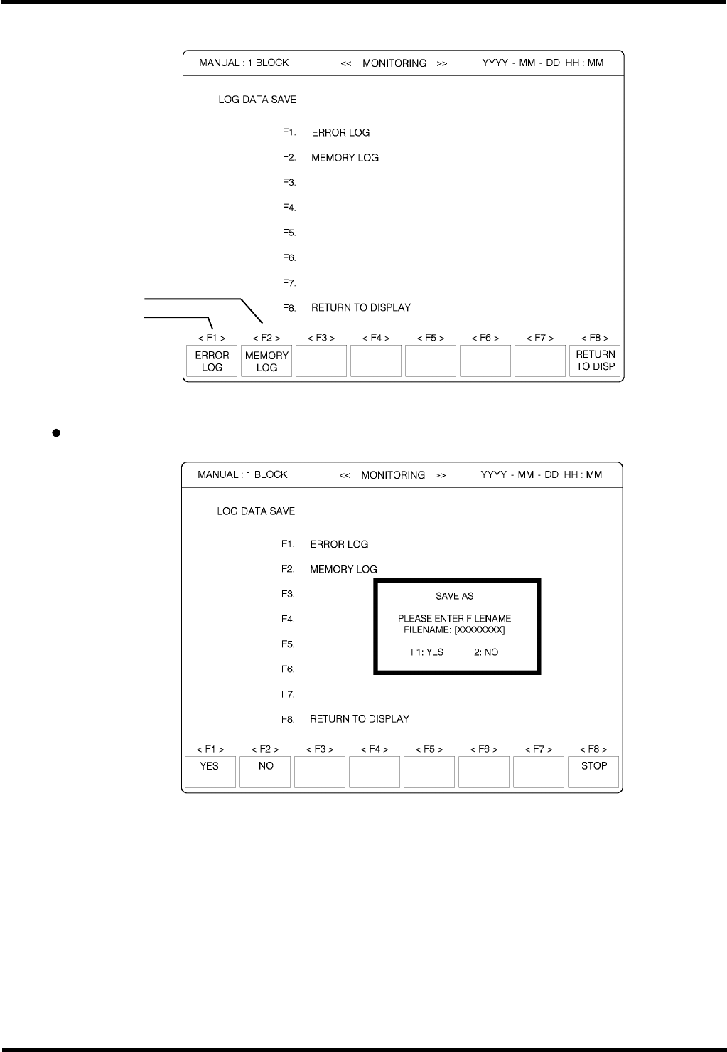 AVK3 维修手册 8.2 监测 D77MCC-71-020- A0 8.2-1 1 5. 保存用户自定义的存储器范围。 输入存储器类型、存储器地址、文件名和保存类型。按“ ENTER ” ( 回车 ) 键。
