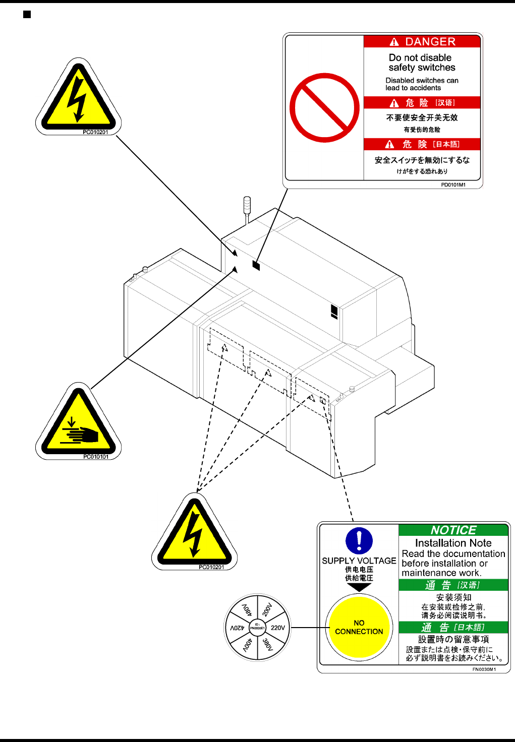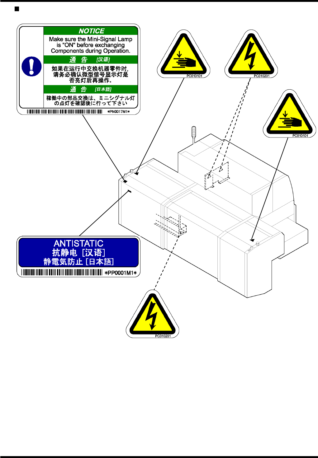 AVK3 维修手册 2.2 警示标牌的位置 D77MCC-10-020- A0 2.2-7 背面 -1