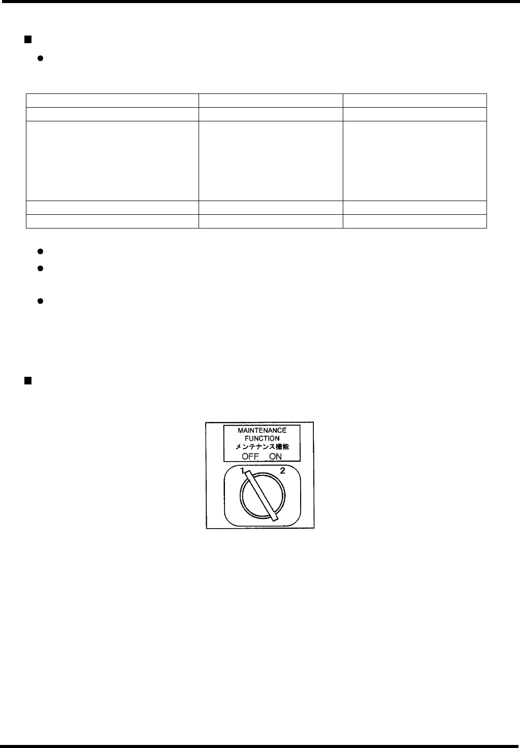 AVK3 维修手册 2.3 维修功能 D77MCC-10-030- A0 2.3-3 2.3.3 功能 状态 维修开关装在机器的正面。 该开关能使安全联锁开关不起作用,以便进行维修工作。 运转模式 手动 自动/半自动 维修开关 ON - 正面 安全联锁开关 (前盖) 后面 安全联锁开关 (后盖) 不起作用 不起作用 起作用 起作用 显示信息 维修 维修电路出错 操纵盘操作 只能在正面 - 在维修时只允许 NC 轴作点动运行。(不能进行 …